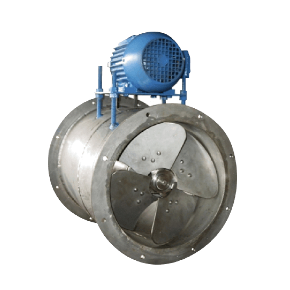 Ventilador extractor-inyector axial robusto de mediana presión y gran caudal. Puede ser aplicado en distintas industrias como: