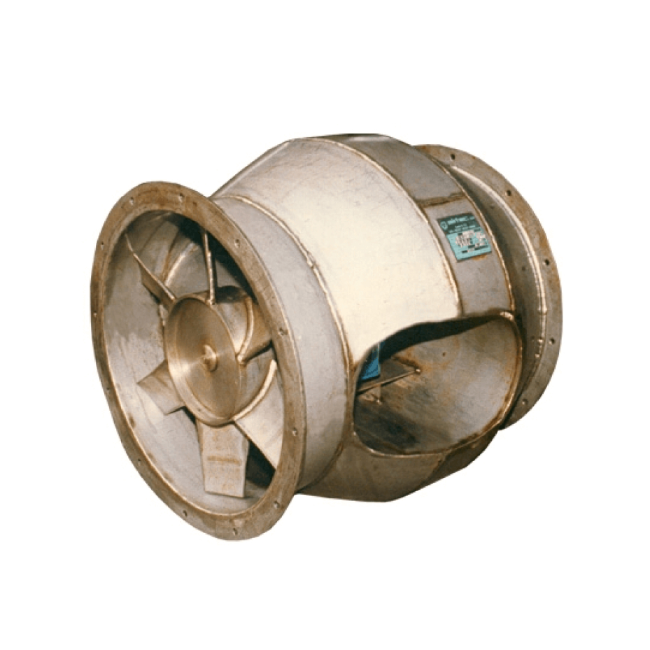Ventilador extractor-inyector axial robusto de mediana presión y gran caudal. Puede ser aplicado en distintas industrias como:
