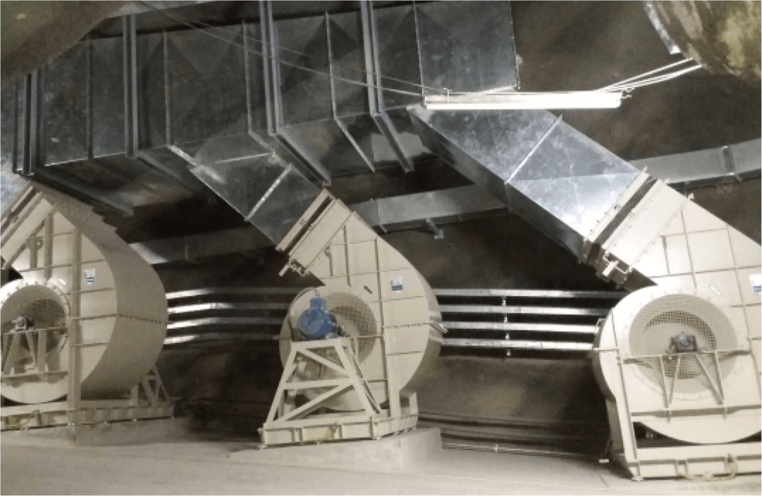 Mineria Yanacocha sistema de ventilación del tunel Apron Feedrs
